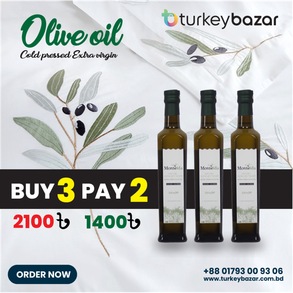 Original price was: ৳ 1,200.৳ 1,000Current price is: ৳ 1,000.Cold Pressed Extra Virgin Olive Oil 500 ml (BUY 3 PAY 2)